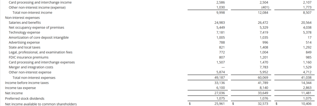 Net income (common)$26.0 millionUp sharply versus $10.4 million in Q1 2025, lower than $32.6 million in Q4 2025 due to lower revenue and higher normalized provisioning.