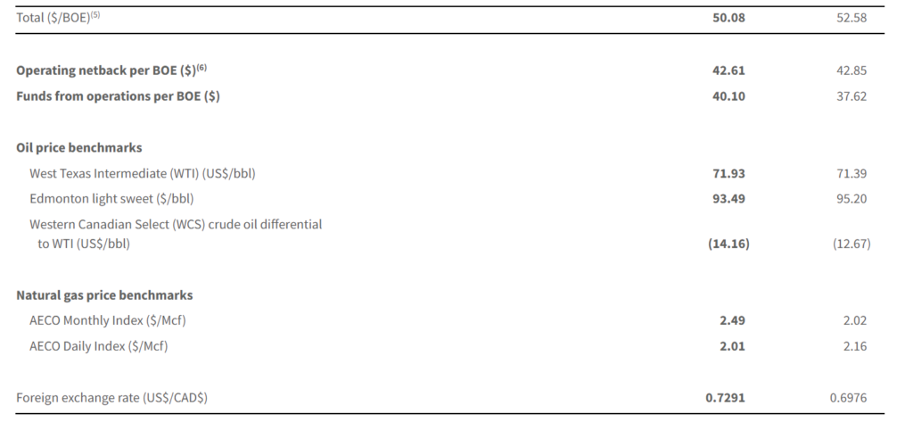 - Operating netback per BOE was $42.61, broadly stable versus $42.85 a year earlier, while funds from operations per BOE rose to $40.10 from $37.62.